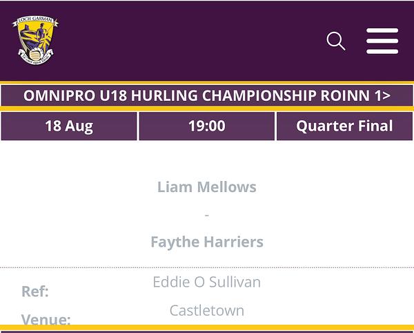 Busy week ahead for our boys team with a number of knockout championship games this week. Our Minors are in action when we travel to play Liam Mellows in Coolgreany on Monday night, our Under 14s play their Division 2 quarter final away to Hwh Bunclody on Tuesday night while our Juveniles travel away to play MonageerBoolavogue