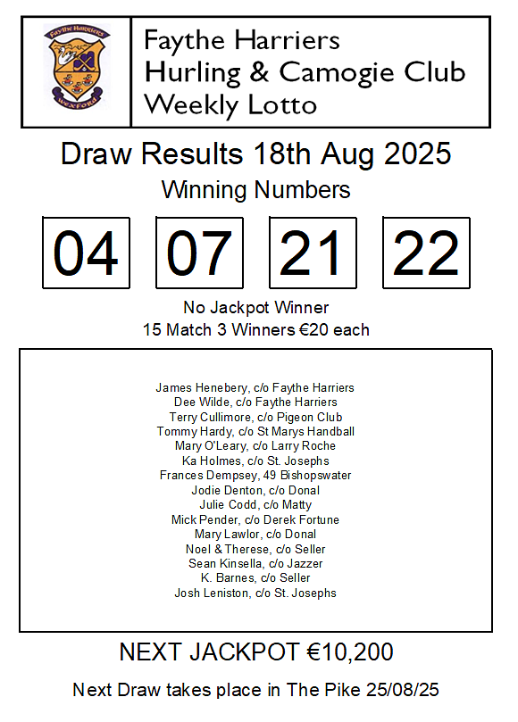 Download our mobile app to hear more about Faythe Harriers Hurling and Camogie Club.