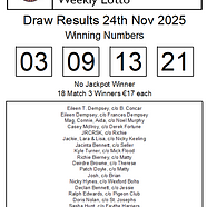 Faythe Harriers Lotto Results 24/11/2025No Jackpot Winner, next weeks jackpot is €15,800There ...