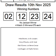 Faythe Harriers Lotto Results 10/11/2025No Jackpot Winner, next weeks jackpot is €15,000There ...