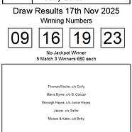 Faythe Harriers Lotto Results 17/11/2025No Jackpot Winner, next weeks jackpot is €15,400There ...